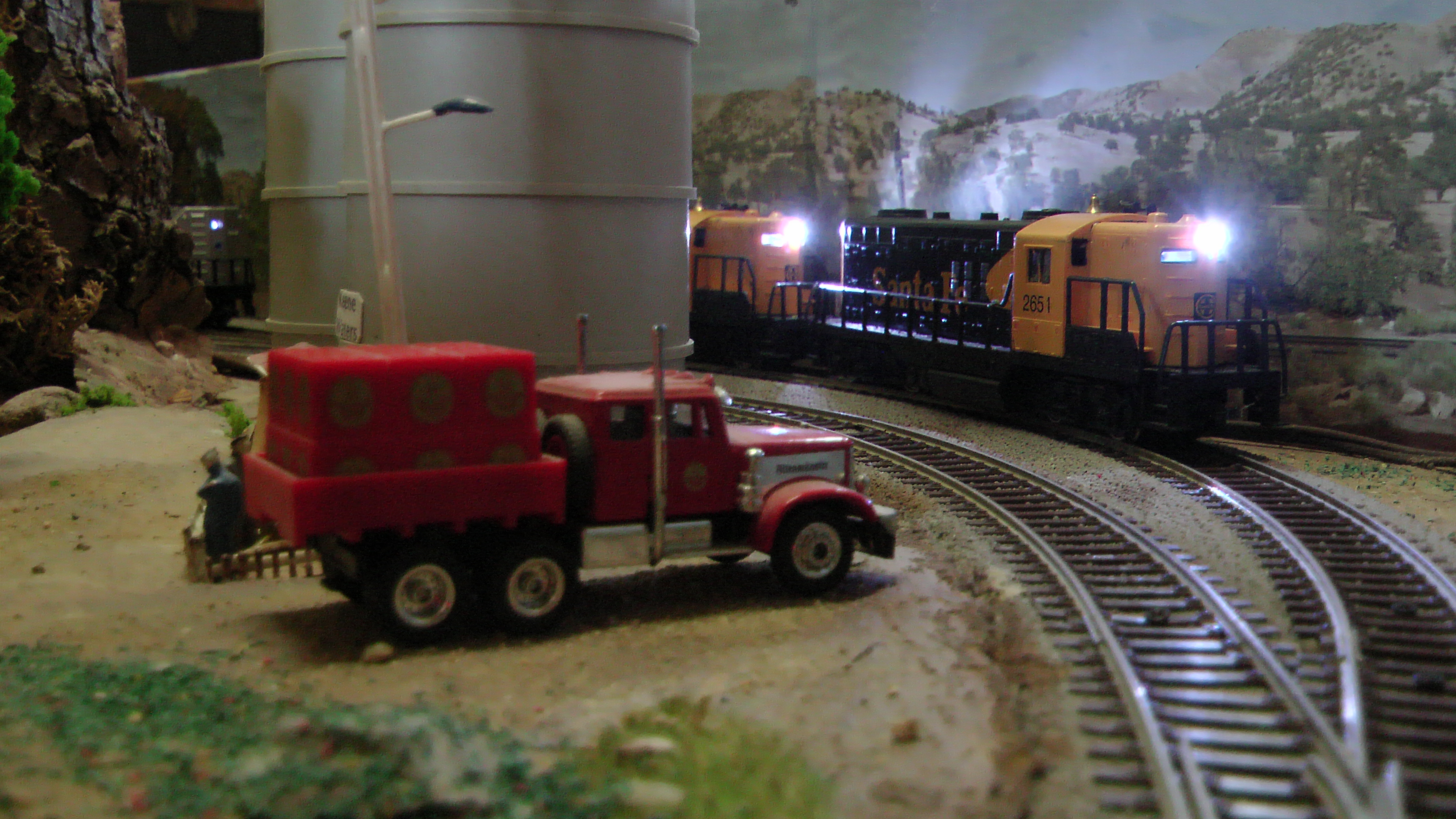 Diese Anlage entstand nach dem Motiv des "Tehachapi-Loop" im US Bundesstaat California. Die Strecke wurde von der Santa Fé Railroad ( heute BNSF ) erbaut und betrieben. Santa Fé und später Amtrak fuhren direkte Personenzüge von San Franzisko bis Los Angeles über diese Bahn. Wie in Amerika üblich, nutzt bis heute der Güterzugverkehr hauptsächlich diese Strecke. Der Tehachapi Loop ist die bedeutendste Railroad-Attraktion der USA für Eisenbahn-Fans in der ganzen Welt, siehe YouTube Videos "Tehachapi Loop" und Live-Cams im Web.